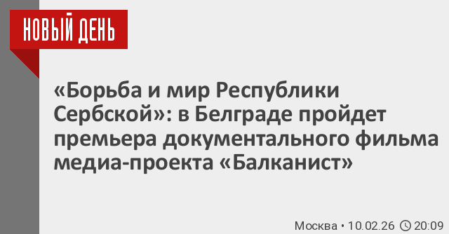 В среду, в Белграде, пройдет премьерный показ полной версии документального фильма «Борьба и мир Республики Сербской», который сняли медиа-проект «Балканист» и его основатель, российский политолог Олег Бондаренко.