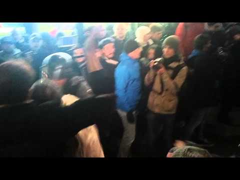 Около 19:30 мск образовалась давка, в результате активного вмешательства полиции. Это вылилось в открытое столкновение. «С одной стороны цепью давит ОМОН, с другой – цепью встали активисты в зеленых фартуках. Сдавливают с двух сторон», – отметил в своем репортаже корреспондент «Газеты.Ru», работавший на месте событий. В толпе распылили газ. Начались драки, полиция задержала около 200 сторонников оппозиции.