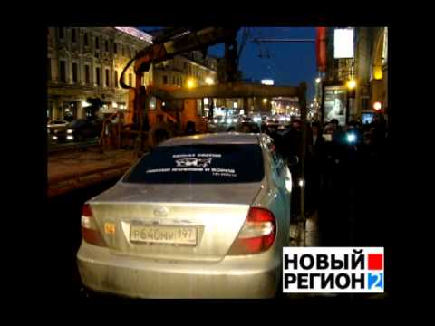 Эвакуатор увозит машину. В ней предположительно те самые палатки оппозиции