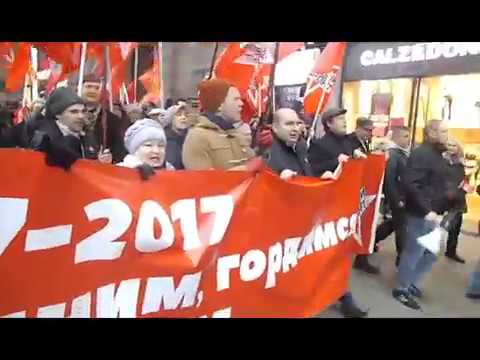 В центре Москвы по Тверской улице маршем прошла праздничная демонстрация в честь 100-й годовщины Октябрьской Революции. Как передает корреспондент РИА «Новый День», так мощно и радостно на демонстрациях 7 ноября давно не выкрикивали «Ура, да здравствует Октябрь!» Затушевать юбилей, несмотря на инспирированное властями молчание СМИ и все каверзы для участников праздничного шествия, так и не удалось.