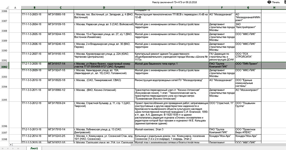 Однако, судя по кодировке в Реестре на сайте Мосгосэкспертизы, это заключение – отрицательное, причем именно по результатам инженерных изысканий. Других документов на данный участок в реестре МГЭ на 9.10.2018 обнаружить не удалось. «Новый День» направил запрос, может ли это отрицательное заключение Мосгосэкспертизы являться основанием для отмены проекта.