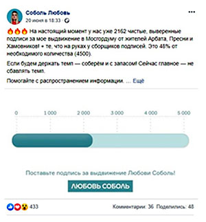 На выборах в Московскую городскую думу, намеченных на 8 сентября, получил продолжение скандал с возможной подделкой подписей в поддержку ряда оппозиционных кандидатов. Судя по сообщениям СМИ, в числе главных фигурантов оказались сторонники Навального – Любовь Соболь, Илья Яшин, Владимир Милов и Константин Янкаускас.