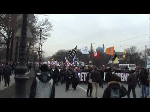 Колонна демонстрантов прошла по Александровскому парку в сторону Петропавловской крепости. Перед колонной ехала машина, увешанная шариками, на ее дверях размещены плакаты движения «Гражданская ответственность». В первых рядах колонны оппозиционеры несли баннер с надписью: «Третий срок – тюремный». Видны флаги «Другой России», националистов, партии «Яблоко» и движения «Солидарность», радужный флаг ЛГБТ-организации. Протестующие скандировали лозунги: «Россия без Путина», «Россия будет свободной», «Это наш город».
