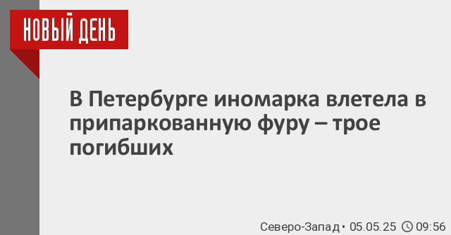 В Санкт-Петербурге три человека погибли при столкновении иномарки с припаркованном грузовиком. Об этом сообщает региональный полицейский главк.