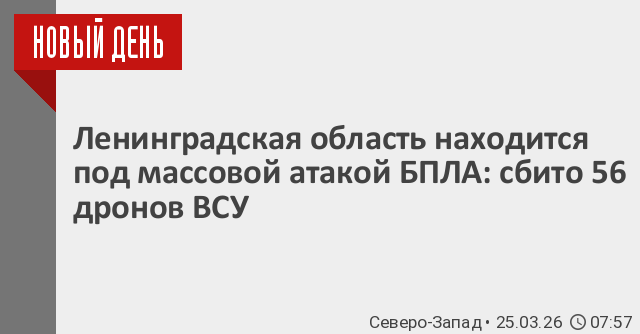 В Ленинградской области силы ПВО за время действия воздушной опасности ликвидировали 56 беспилотников. Об этом сообщил губернатор региона Александр Дрозденко в Max.