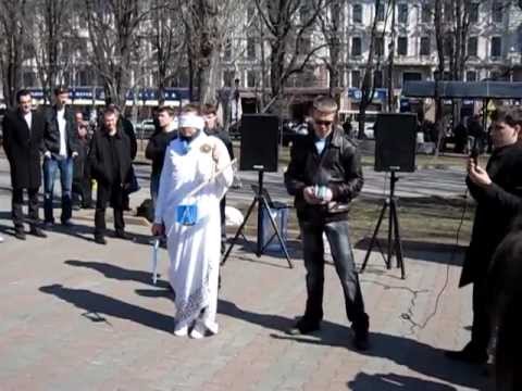 На Соборной площади участники акции провели флеш-моб. Они развалили построенную из коробок стену с надписями «Стоп, мажор!» и продемонстрировали символическую украинскую Фемиду, у которой весы склоняются на сторону денег.