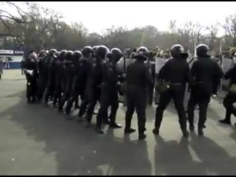 На одесском стадионе ФК «Черноморец» в ходе учений сотрудники спецподразделения «Беркут» учились усмирять разъяренную толпу болельщиков.