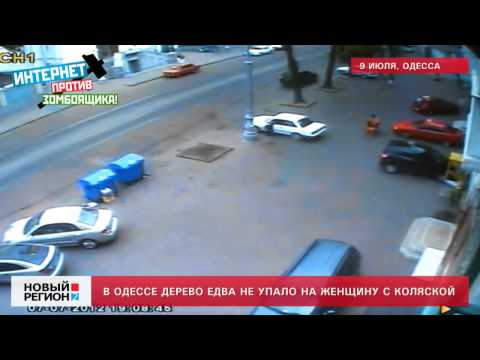 Молодая мама вовремя среагировала на опасность, отбежала и буквально в последнюю секунду успела увернуться от падающего дерева.