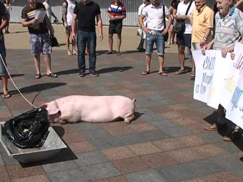 В ходе акции к зданию мэрии принесли в корыте свинью по имени Игорь Олегович Марков. Напомним, бизнесмен и лидер партии «Родина» Игорь Марков является владельцем компании «Союз», которая занимается вывозом мусора с улиц Одессы.