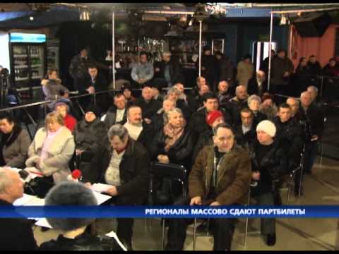 Публичную акцию выхода из рядов Партии регионов провели 13 жителей поселка Черноморское Одесской области, среди которых и депутаты поссовета. Перед объективами телекамер они сложили свои партбилеты.