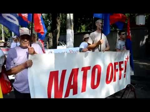 Они скандировали «Янки гоу хоум», «Мы не янки, мы – славяне, наши братья – россияне». Кроме того, в ходе акции протеста ПСПУшники вывесили на дереве плакат с изображение солдата НАТО, в которого начали метать яйца.