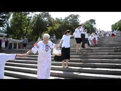Сегодня в Одессе участники «Вышиванкового фестиваля» выстроили «живую» цепь из людей, одетых в вышиванки. Она растянулась от памятника Дюку де Ришелье вниз по Потемкинской лестнице, через подземный переход и улицу Приморскую на Морской вокзал.