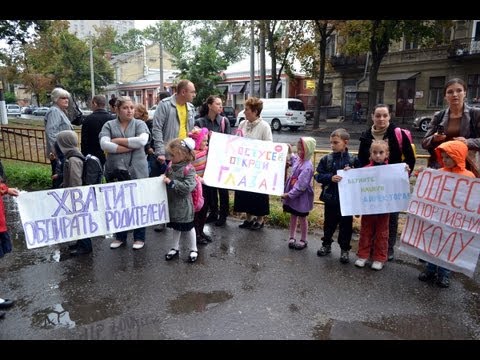 В одесской школе олимпийского резерва №59 начался настоящий бунт – родители и школьники вышли с плакатами на улицу и требуют вернуть старого директора Раису Олийнык, потому что новая директриса Анна Чернухина требует от них сдать деньги на ремонт крыши.