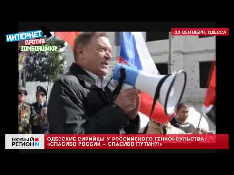 В ходе митинга выступил представитель сирийской диаспоры в Одессе, который так же высказал слова благодарности России и Путину.