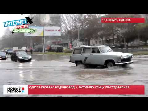 Сегодня в Одессе на улице Люстдорфская дорога в районе площади Толбухина прорвало водопровод. В результате аварии около 100 метров проезжей части оказалось подтопленными.