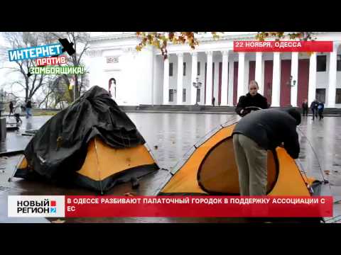 Сегодня в Одессе началась акция в поддержку подписания соглашения об ассоциации между Украиной и Евросоюзом. В центре города у здания горсовета на Думской площади были установлены палатки.