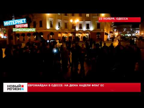 Сегодня в Одессе на второй день акции в поддержку ассоциации Украины с ЕС пришло около 100 человек. Митингующие надели флаг Евросоюза на памятник Дюку де Ришелье. Об этом сообщает корреспондент «Нового Региона».