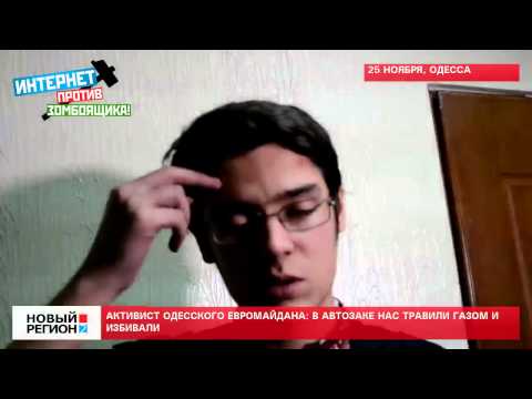 Задержанный активист Одесского Евромайдана Виталий Устименко утверждает, что при задержании он и его соратники были избиты сотрудниками милиции, после чего в автозак к ним пустили слезоточивый газ.