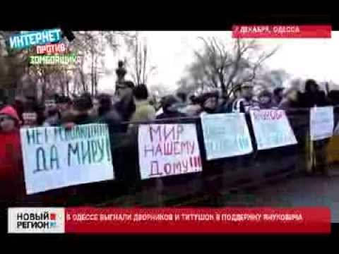 В Одессе на Думской площади у здания Одесского горсовета проходит два митинга. В одном собрании участвуют работники коммунальных служб, которые молча держат флаги и плакаты, а в другом сторонники евроинтеграции. Они скандируют «Зека геть!», «Банду геть!» и поют гимн Украины.