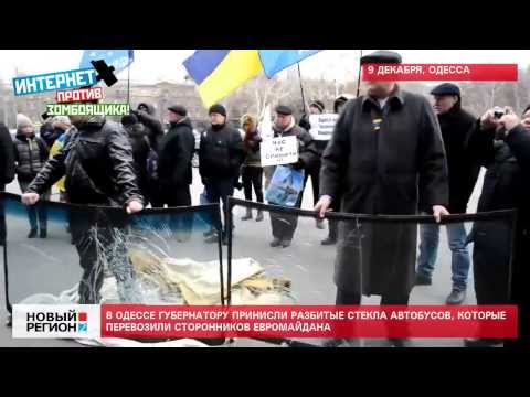 Активисты Евромайдана в Одессе принесли под здание облгосадминистраци два лобовых стекла микроавтобусов, которые были разбиты неизвестными во время перевозки людей на митинг в Киев.