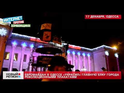 Как сообщал «Новый Регион», в этом году в Одессе собираются поставить уменьшенную копию столичной елки, которую разобрали на баррикады участники Евромайдана. Остался только каркас. Его украсили флагами Украины и различными плакатами.