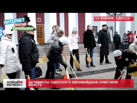 В воскресенье активисты одесского Евромайдана после традиционного митинга у памятника Дюку де Ришелье взялись за метлы, и пошли очищать город от нынешней власти.