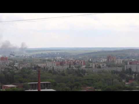 Взрыв во время боя в Семеновке, снятый одним из жителей Славянска.