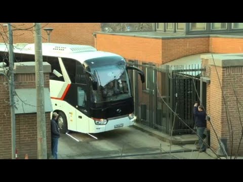 Высылаемые из России американские дипломаты сегодня утром покинули здание посольства в столице и направились в аэропорт.