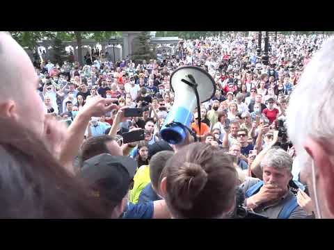 Сегодня утром жители Хабаровска и других городов региона вышли на стихийный митинг в поддержку губернатора Сергея Фургала, который был арестован по обвинению в организации ряда преступлений. Центр города изначально был огорожен забором, но участники акции прорвались через него. Трансляцию протеста вел портал dvhab.ru.
