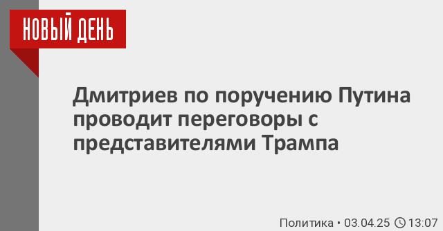 Обновлено. В Кремле отказались раскрыть детали переговоров Дмитриева с представителями Трампа в США. «Понятно, что по поручению президента в рамках своего мандата. В данном случае понятно, он спецпредставитель президента понятно по каким вопросам. Он потом даст информацию по завершению контактов», – сказал пресс-секретарь президента РФ Дмитрий Песков журналистам (цитата по радио «Маяк»).