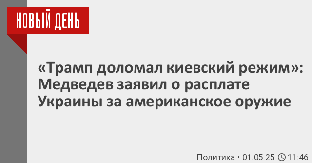 «Трамп доломал киевский режим расплачиваться за американскую помощь полезными ископаемыми. Теперь за военные поставки придется платить национальными богатствами исчезающей страны», – написал Медведев в своем телеграм-канале.