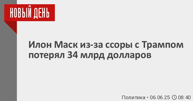 Накануне между бизнесменом и американским лидером произошла публичная перепалка из-за предложенного Трампом масштабного законопроекта о сокращении федеральных расходов. Маск раскритиковал инициативу и назвал ее «отвратительной мерзостью». В ответ президент США отметил, что разочарован Маском, так как «сделал для него многое». В свою очередь миллиардер заявил, что Трамп благодаря ему одержал победу на выборах.