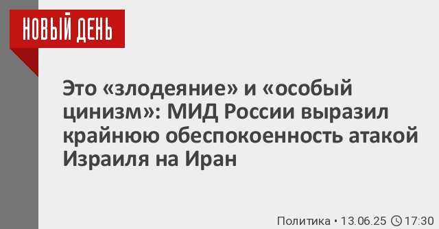МИД России выступил с заявлением об обострении ситуации на Ближнем Востоке, осудив атаку Израиля на Иран. В российском внешнеполитическом ведомстве считают, что Тель-Авив совершил «злодеяние».