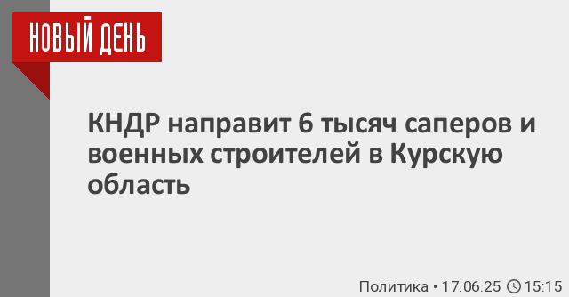 Лидер КНДР Ким Чен Ын принял решение направить одну тысячу саперов и 5 тысяч военных строителей для участия в восстановлении разрушенных инфраструктурных объектов Курской области. Об этом сообщил секретарь Совбеза России Сергей Шойгу заявил по итогам переговоров с лидером Северной Кореи.