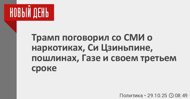 Помимо дипломатических и экономических вопросов, Дональд Трамп также подогрел спекуляции о своём политическом будущем. В среду он заявил, что ему «не разрешено» баллотироваться на третий срок в качестве президента Соединённых Штатов. «У меня самый высокий рейтинг в опросах, и, знаете, судя по тому, что я читал, мне, похоже, не разрешено баллотироваться, так что посмотрим, что из этого выйдет... Это позор, конечно», – заявил американский лидер на борту Air Force One по пути в Южную Корею.