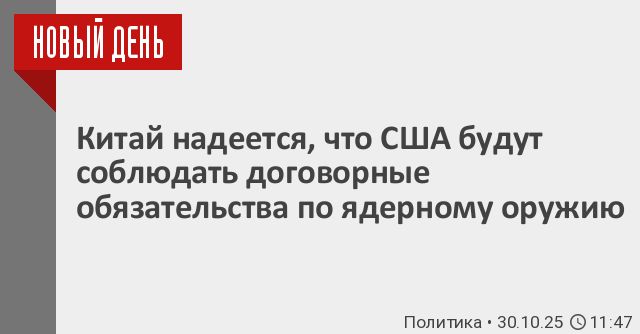 Китай надеется, что Соединенные Штаты будут искренне и честно соблюдать свои обязательства по Договору о всеобъемлющем запрещении ядерных испытаний. Это пожелание было высказано после заявления президента США о том, что Америка «немедленно» начнет испытания ядерного оружия.