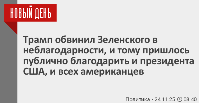 Президент Украины Владимир Зеленский 23 ноября благодарил Трампа и всех американцев. Случилось это после того, как Дональд Трамп в соцсетях обвинил главу киевского режима в отсутствии благодарности за все, что Америка делает для Украины.