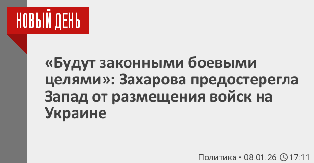 Она напомнила, что 6 января в Париже участники возглавляемой Великобританией и Францией так называемой «коалиции желающих» подписали с киевским режимом декларацию «Надежные гарантии безопасности для прочного и долгосрочного мира». В МИД России полагают, что документ крайне далек от мирного урегулирования и направлен на продолжение милитаризации, эскалацию и разрастание конфликта.