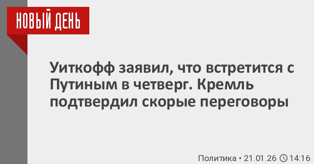 На прошлой неделе агентство Bloomberg сообщало, что Уиткофф и Кушнер планируют в январе посетить Москву для встречи с Путиным, чтобы представить последнюю версию мирного плана российскому лидеру. Пресс-секретарь президента России Дмитрий Песков заявлял, что в Кремле считают необходимым, актуальным и важным продолжение диалога с США по Украине. По его словам, в Москве рассчитывают, что визит представителей США в Россию состоится.