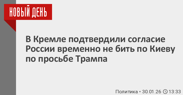 В Кремле подтвердили, что президент США Дональд Трамп попросил российского коллегу Владимира Путина воздержаться от ударов по Киеву до 1 февраля для создания благоприятных условий для переговоров.
