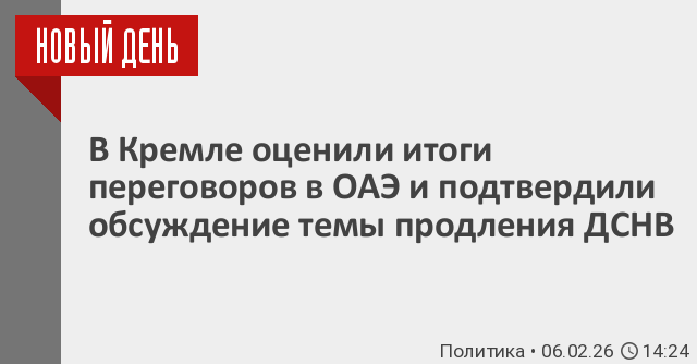 Пресс-атташе Кремля подтвердил, что в Абу-Даби затрагивалась тема продления положений ДСНВ. «Конечно, положения могут как-то формально продлеваться. Каких-то неформальных продлений в такой области вряд ли можно себе представить», – отметил пресс-секретарь президента РФ, комментируя сообщения СМИ о том, что Москва и Вашингтон могли договориться о продлении положений ДСНВ на полгода для разработки нового соглашения.