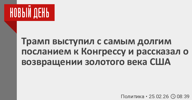 Дональд Трамп потратил более часа на защиту своих экономических успехов, начиная с тарифов, и лишь в конце своего марафонского послания к Конгрессу о положении дел в стране, самого длинного в истории, он обратился к зарубежным вопросам.