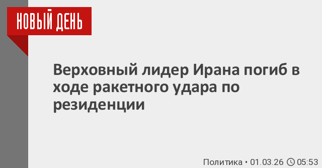 Верховный лидер Ирана Али Хаменеи погиб. Информация об этом озвучена государственным телевидением Ирана. «Великий народ Ирана, верховный лидер Ирана имам Хаменеи погиб», – говорится в сообщении.