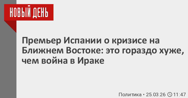 Выступая перед испанскими парламентариями, премьер-министр Испании Педро Санчес охарактеризовал нынешний конфликт на Ближнем Востоке как «сценарий (...) намного хуже», чем война в Ираке в 2003 году.