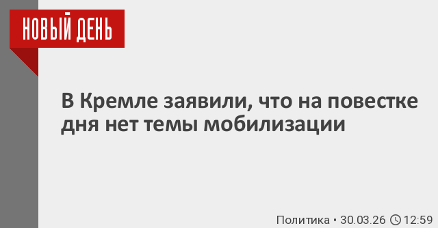 «Такой темы нет на повестке дня», – сказал представитель Кремля журналистам, комментируя заявление президента Финляндии Александра Стубба, допустившего объявление в России всеобщей мобилизации.