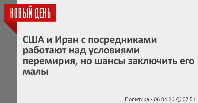 Американский чиновник заявил, что администрация Трампа в последние дни представила Ирану несколько предложений, но иранские официальные лица пока отказались их принять. Источники добавили, что посредники считают, что полное открытие Ормузского пролива и решение проблемы высокообогащенного урана в Иране – либо путем его вывоза из страны, либо путем разбавления – могут стать результатом окончательного соглашения.