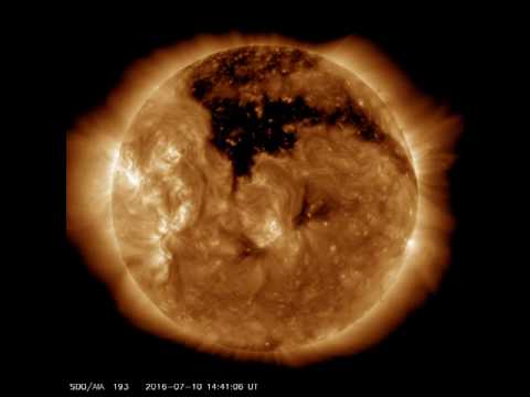 На Солнце сформировалась гигантская корональная дыра, сообщает Huffington Post со ссылкой на Обсерваторию солнечной динамики NASA. Дыра занимает 1/6 площади звезды. Анимированное изображение этого явления, составленное из снимков NASA, опубликовано на видеохостинге YouTube.