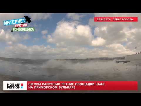 Шторм, разыгравшийся в Черном море 24 марта, разнес набережную Приморского бульвара в Севастополе. Рядом с Памятником затопленным кораблям выворочены гранитные плиты. Рядом с памятным знаком эскадре ЧФ море вымыло тротуарную плитку. Пострадали кафе на набережной: ветер сорвал тенты и сбил лепные украшения. Рядом с рестораном «Островок» покорежены перила.