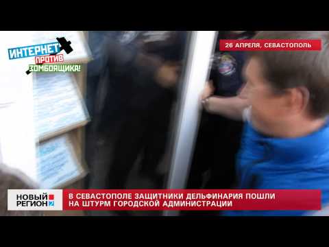 В 16:00 несколько сотен жителей Севастополя предприняли попытку штурма городской государственной администрации в ответ на нежелание чиновников вмешиваться в ситуацию вокруг силового захвата местного дельфинария.