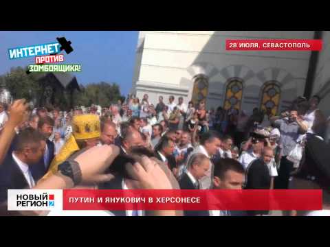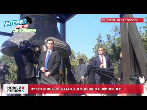 Владимир Путин и Виктор Янукович утром в воскресенье приняли участие в освящении гигантского колокола, что был подарен Владимирскому собору в Херсонесе новоиспеченным депутатом-миллиардером Вадимом Новинским незадолго до выборов.